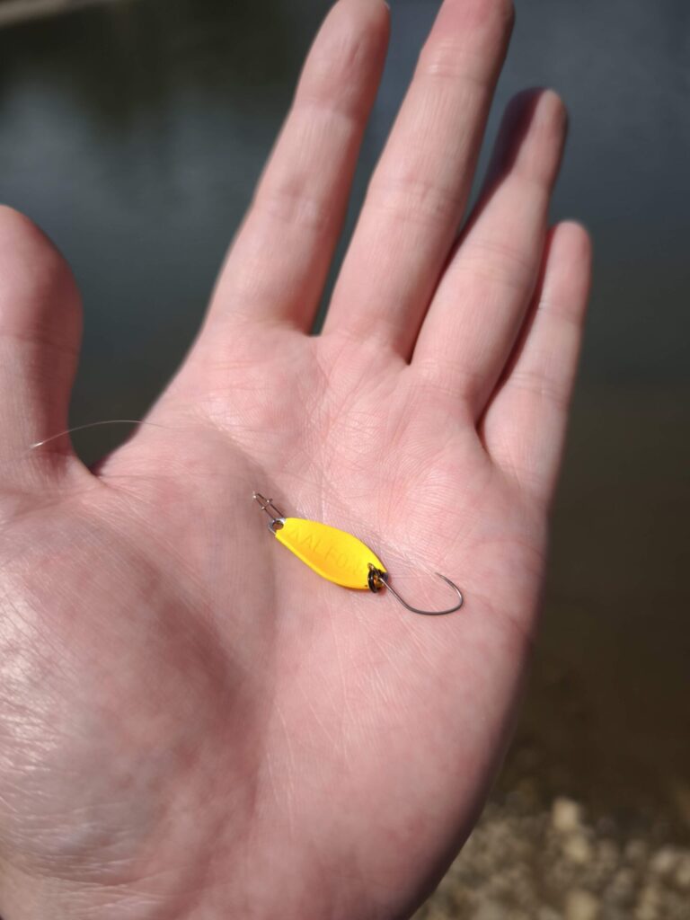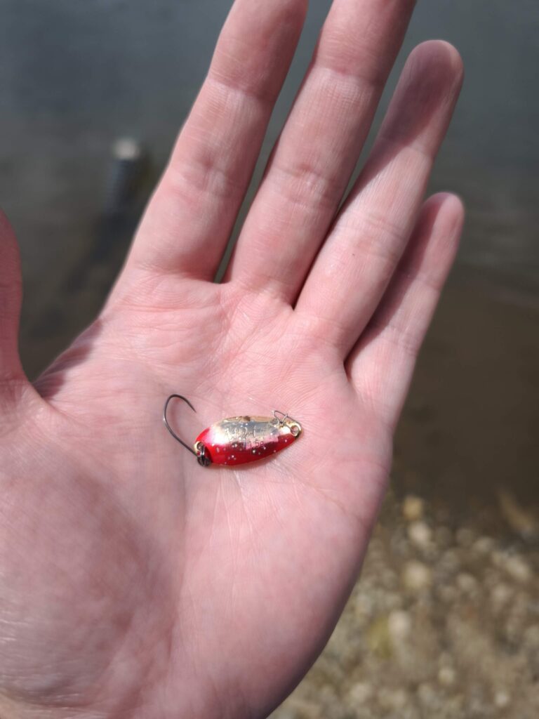 定番のNOA赤金(1.5g)で放流狩りを狙います。