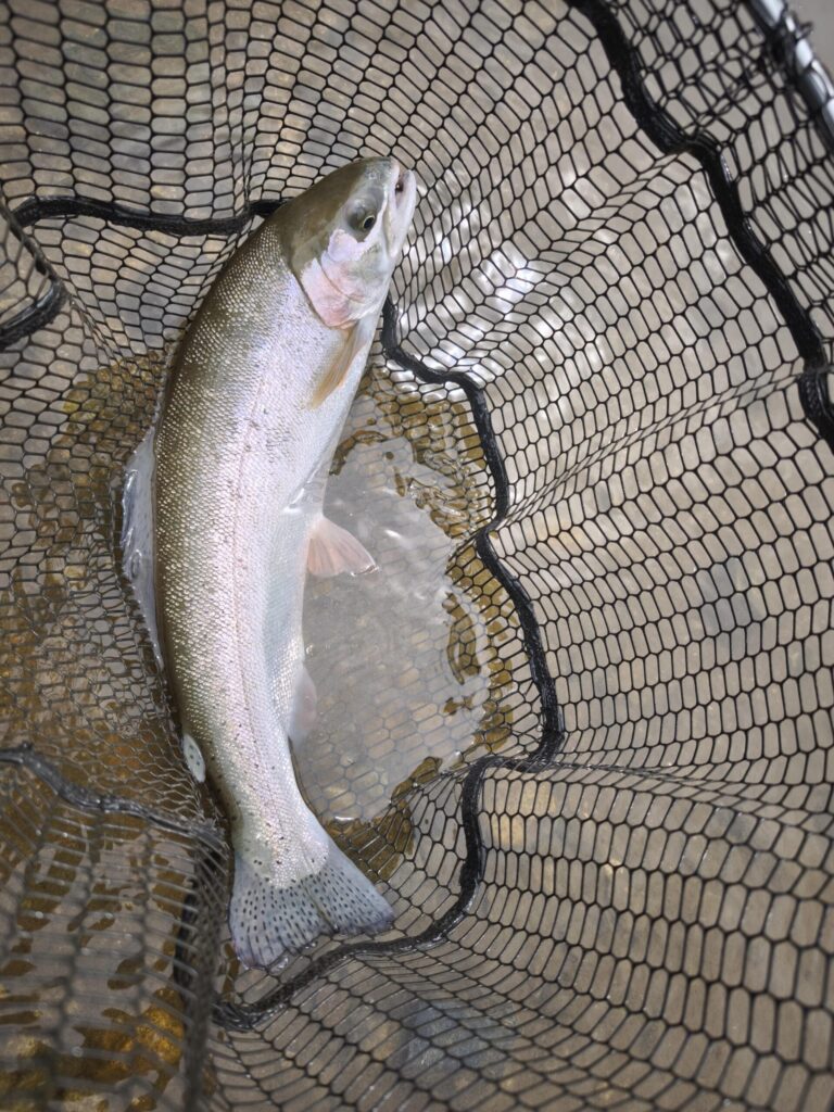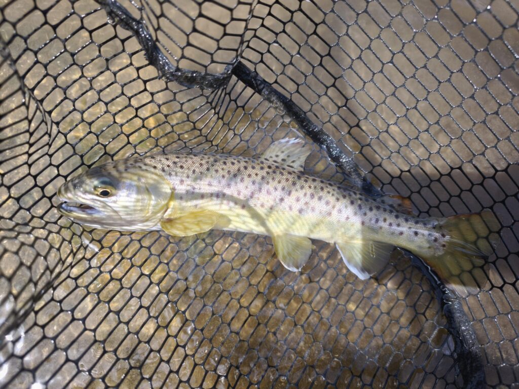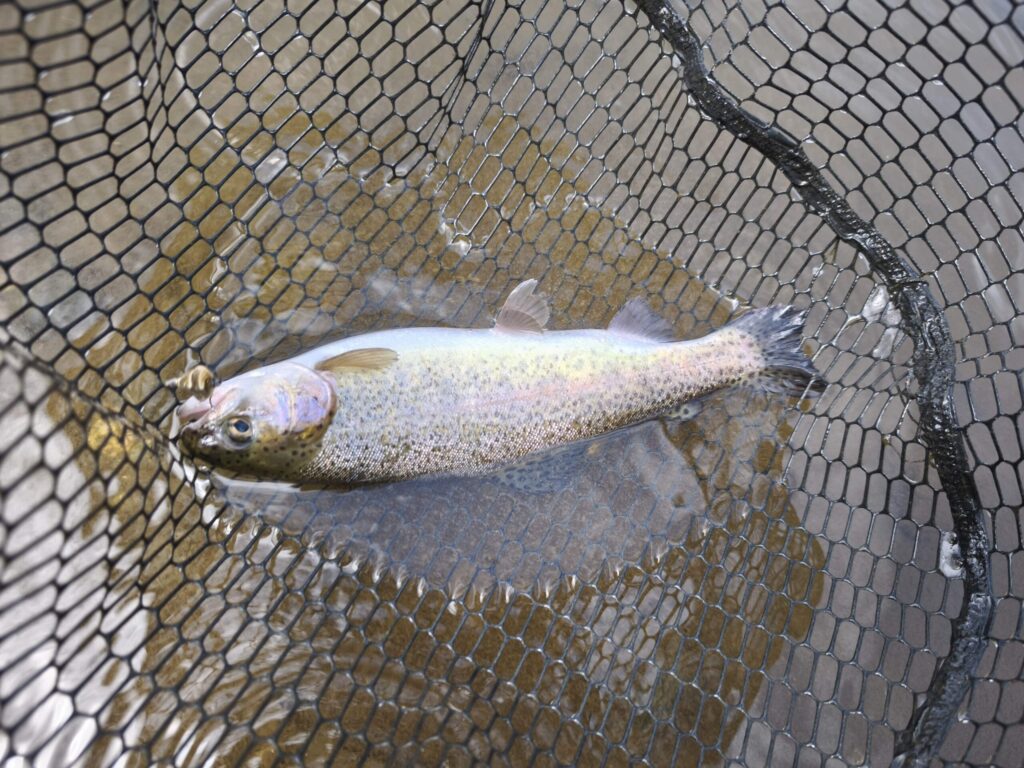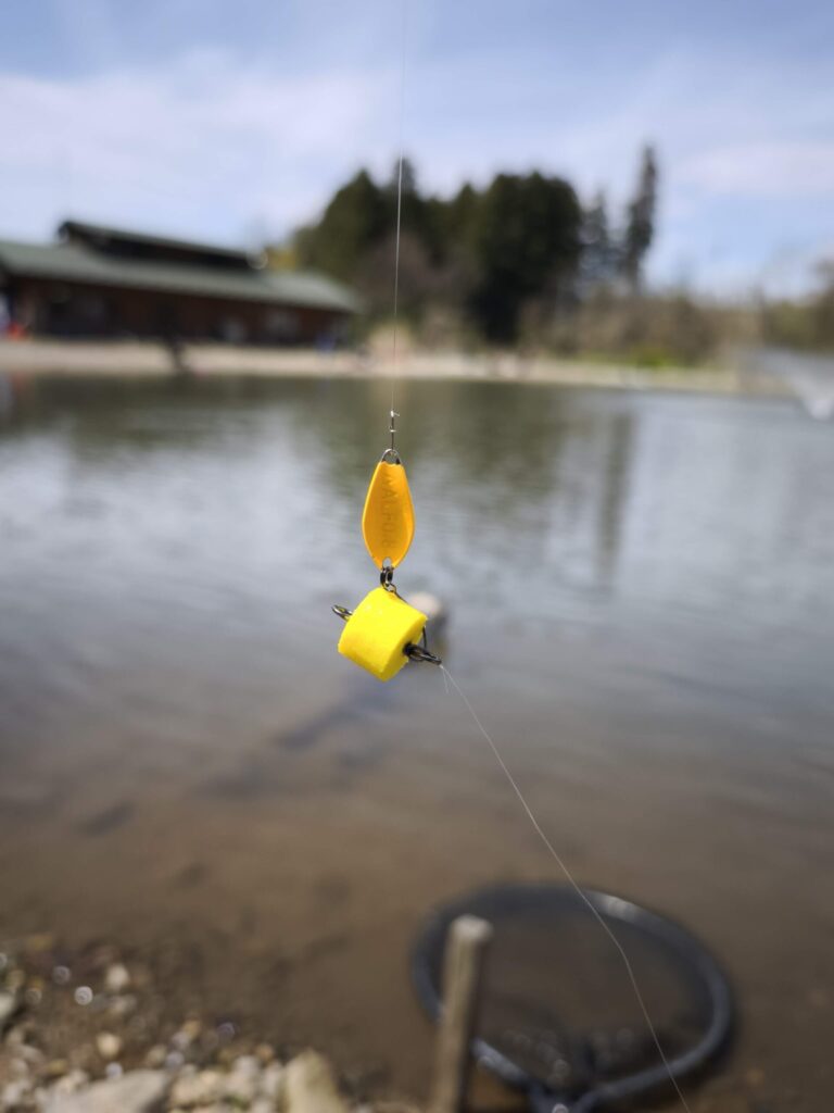 強めのカラー選択でオレンジのバベルエース(0.4g)にしましたが、放流の効果もあってかバッチリ釣れます。