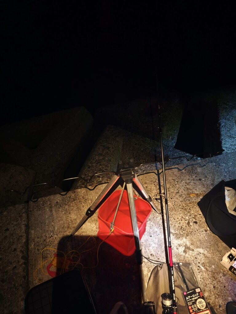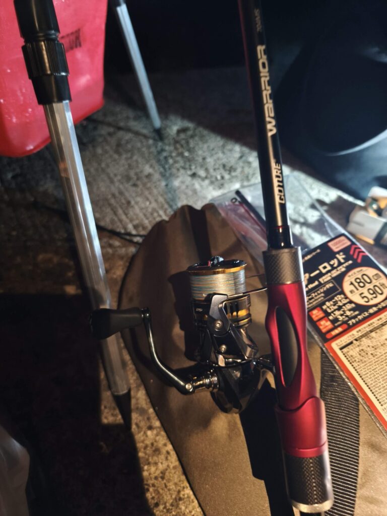 さっそく釣り場へワープして設営。時間帯のおかげか釣り座は比較的余裕があります。