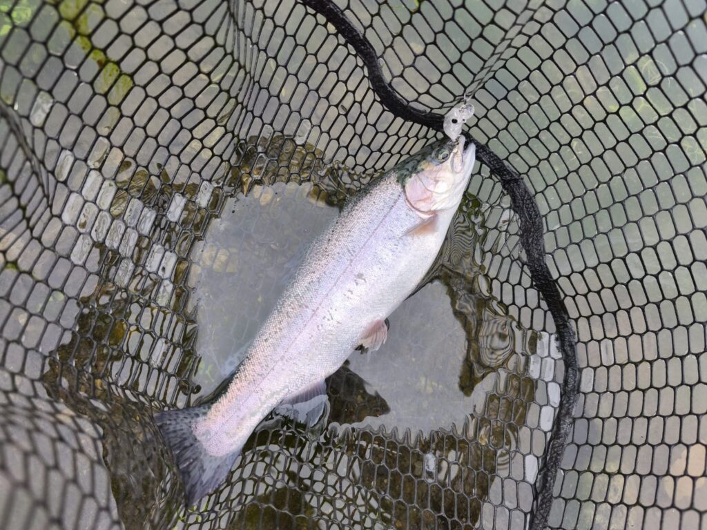 マスはだいぶトップに出てパシャパシャ跳ねていますが、反応は如何に。